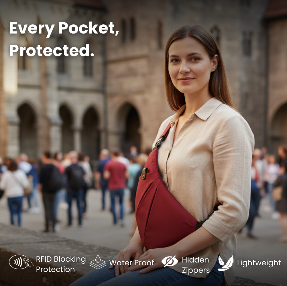 Yes — with hidden zippers, RFID-blocking pockets, and a slash-proof strap, it’s built to keep thieves out, even in the busiest streets or metros.